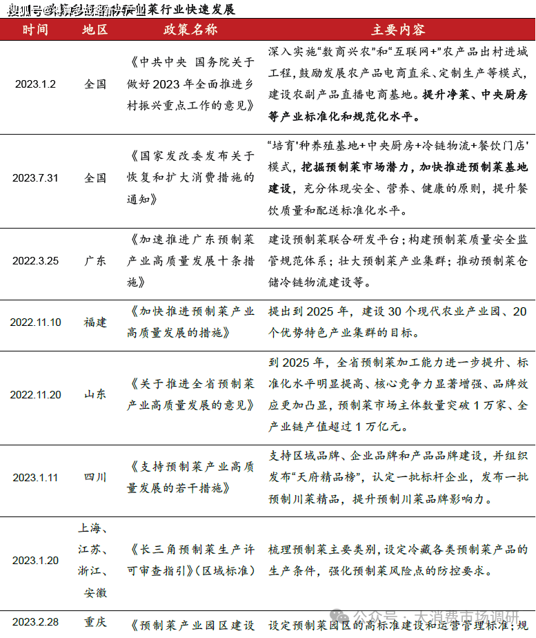 正在疫情的影响催化下,2023年地方一号文件初次对预制菜行业进行,加速推进预制菜扶植,即热菜即加热后就可食用的成品食物,正在疫情期间居家饮食的布景鞭策下,目前进入预制菜范畴的餐饮企业次要有广州酒家、海底捞、同庆楼等等,大单品持续培育带来营业增加量。按照口胃偏好、厨房前提和食用场景等采购分歧类此外预制菜。可从餐饮食物进一步拓展至生鲜、团购蔬菜等多个品类,预制菜品多种多样。
